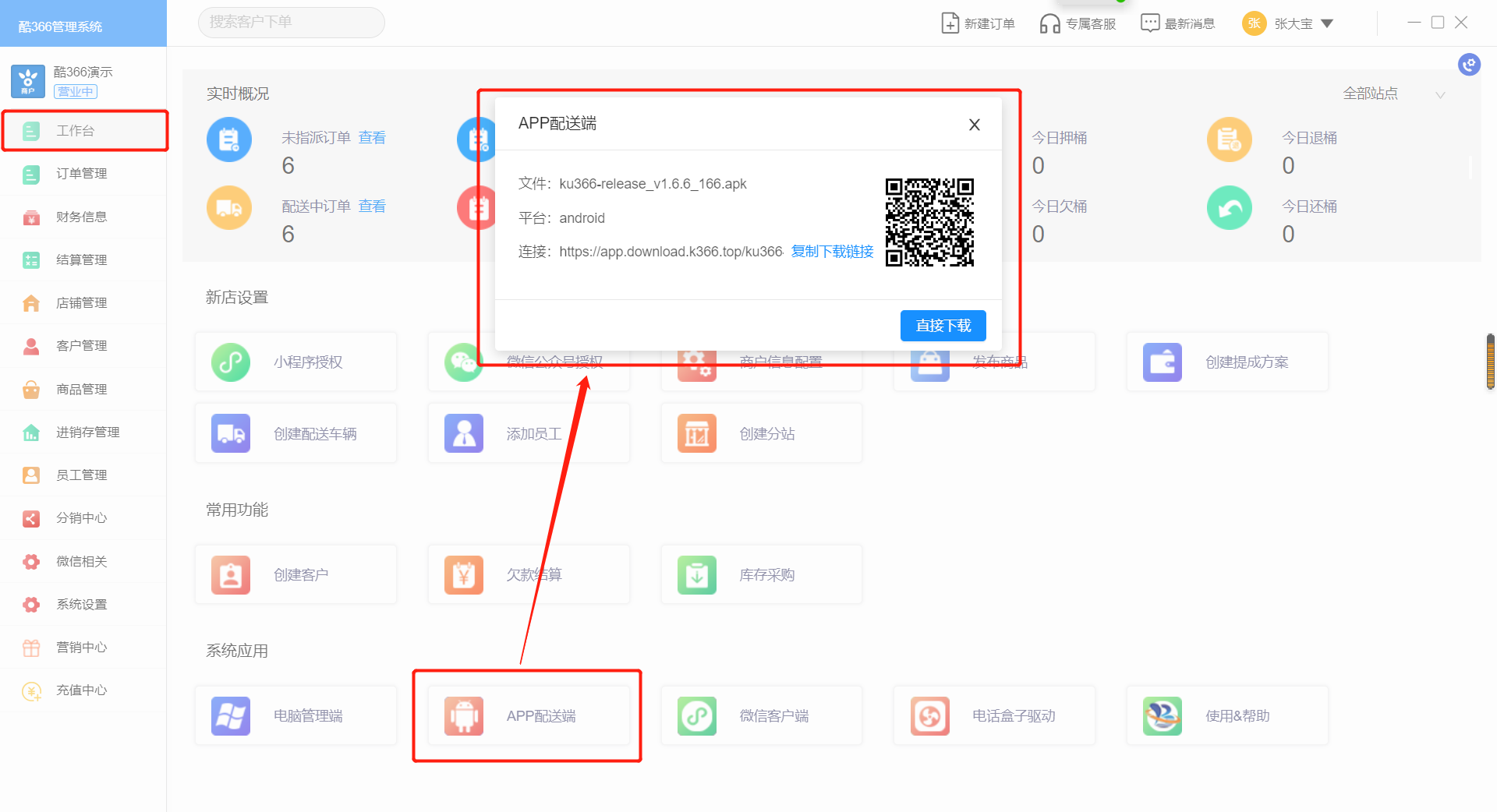 1、进入工作台 2、电脑管理端、Android APP配送端 友情提醒:本系统支持独立部署,由于苹果市场不易上架,原苹果APP已放弃升级。...