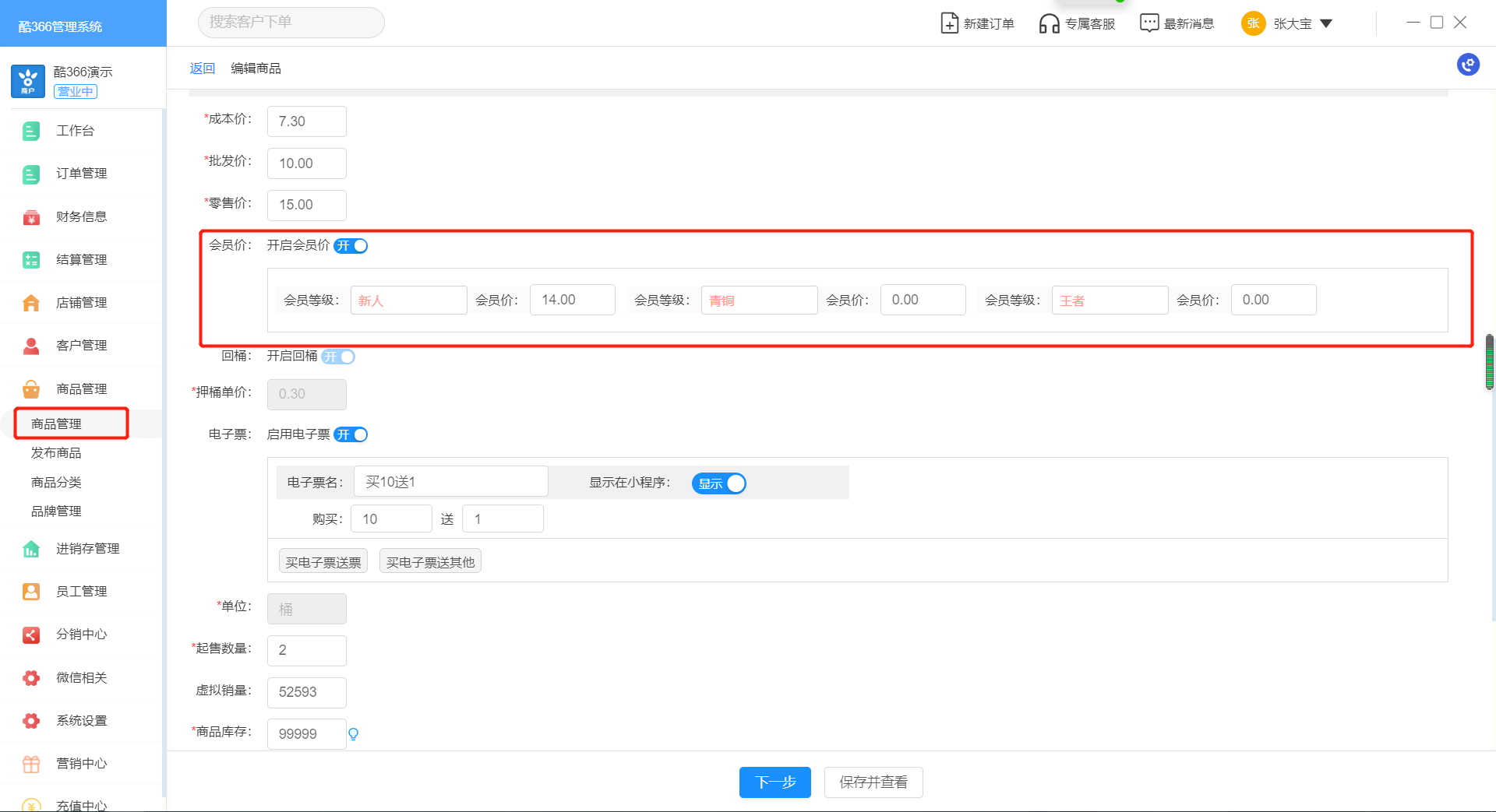 1、进入商城商品管理 2、选择店铺再选择商品库(发布重点) 3、依次填写商品信息并开启电子票 4、商品上架并显示在...