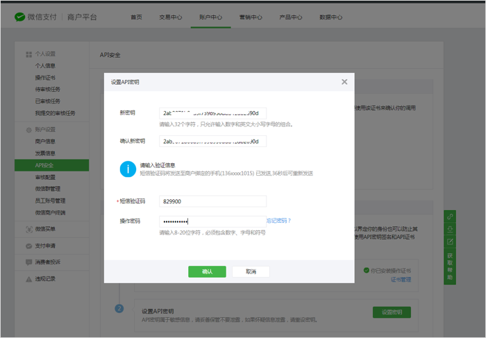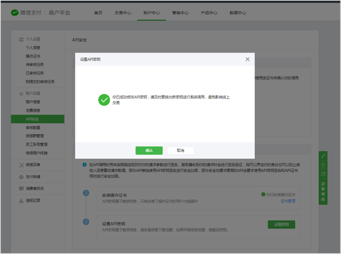 2.1:切换到微信支付页面,设置商户API密匙;(找不到页面返回⬆查看第1.2步)