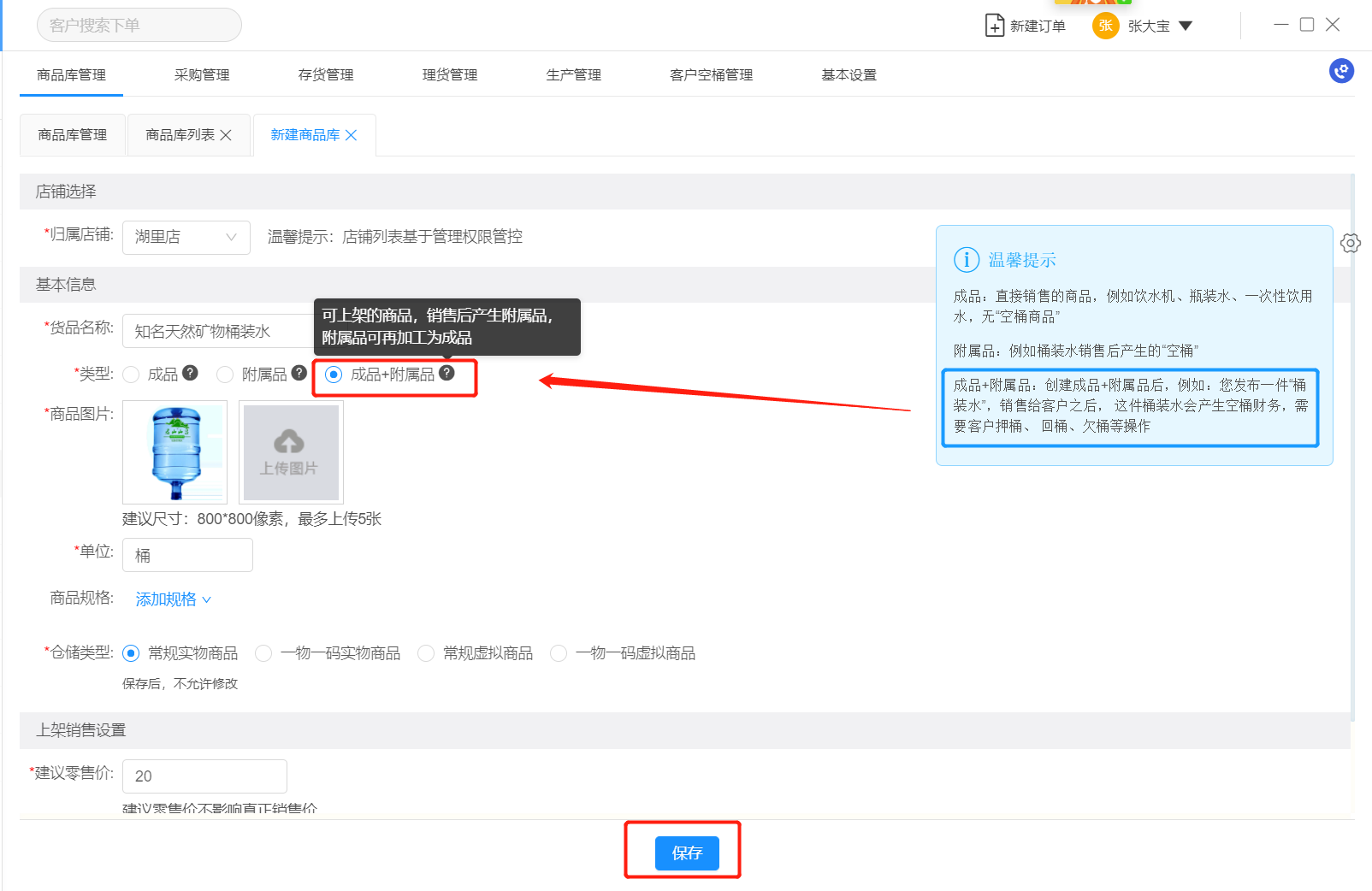 一般仓储类型选择默认“常规实物商品”,商品需要追溯的选择“一物一码”;